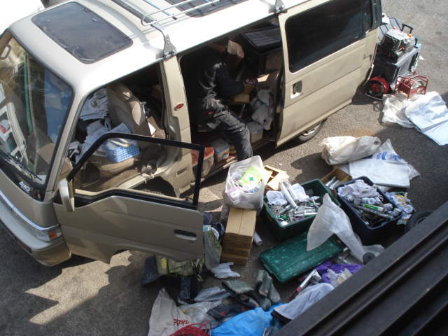 車内の荷物すべて出し始める