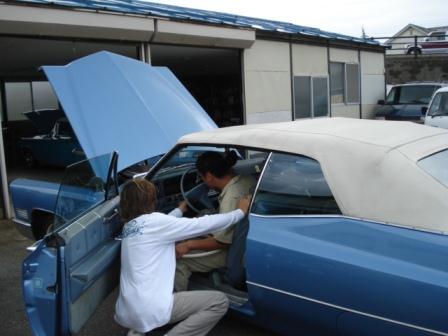 666氏のキャデラックが丁度、整備中だったので室内に乗り込みオナラしちゃいました♪♪♪