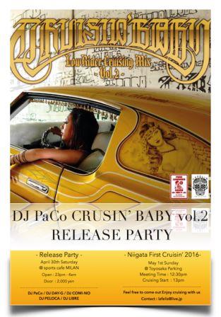 今回、LAFELISccよりEL Chicanna(怪力君の愛車)がCDジャケットに使用され、それを記念しDJ PaCo Release Partyが 新潟市のsports cafe MILAN 万代ビルボートプレイス2で開催されました。
