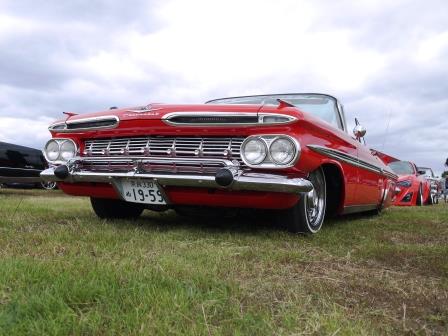 丁寧に仕上げられた59年のクリーンなエンジンルームを拝見(*^^)v