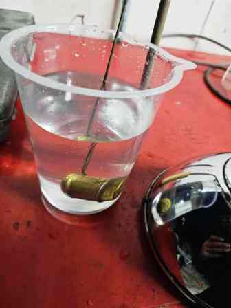 コイルの根元にじわりと滲む液体。