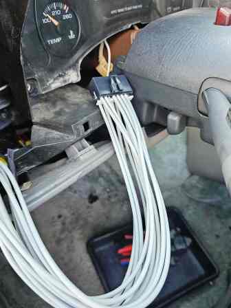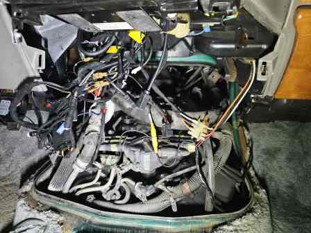 ところが…オーバーヘッドコンソロールの配線を辿っていくと、なんと本元で電源供給線がブッツリ切断されているではないか!