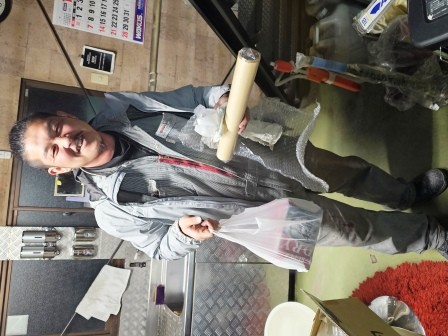 新潟県からラフィリスCCのTさんが、上越の 山崎自工・山崎さんのキャリアカーに乗って御来店!